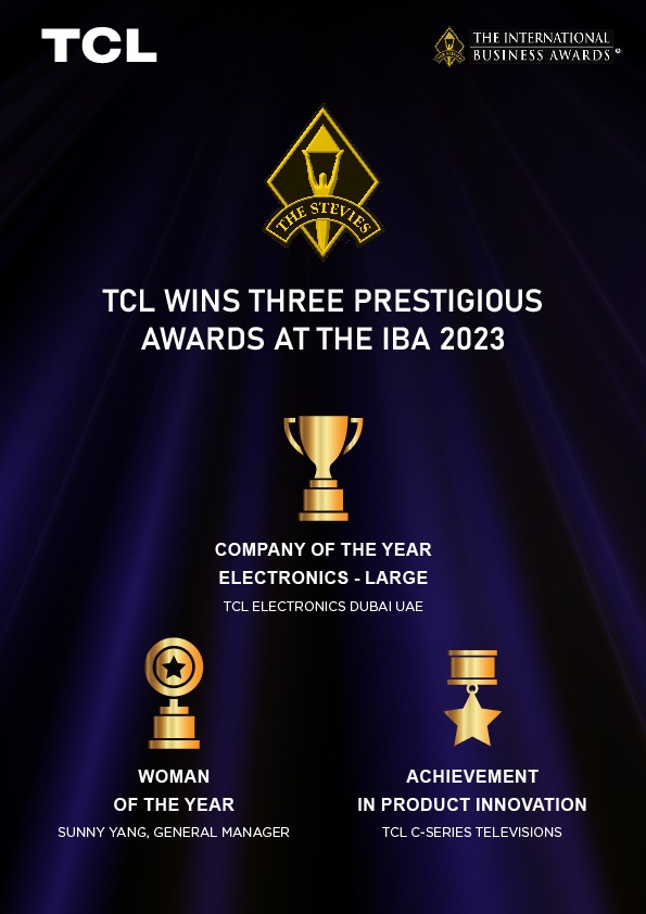 In addition to the company’s overall triumph, the International Business Awards also shone a spotlight on exceptional individuals within TCL Electronics. Ms. Sunny Yang, the General Manager of TCL MEA, was honoured with a Silver Stevie Award for Woman of the Year. This recognition underscores her exceptional leadership, vision, and contribution to the organization’s success, as well as her influence as a role model for women in the business world.
